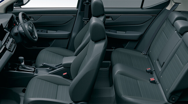 Honda CONNECT for Gathers+ナビ装着用スペシャルパッケージ/Honda SENSING/LEDフォグライト/本革巻ステアリングホイール+セレクトレバー/リアセンターアームレスト(ドリンクホルダー付)/パーセルカバー/コンビシート(プライムスムースXファブリック ブラックステッチ)/17インチアルミホイール(ベルリナブラック)/BLACK STYLE専用装備