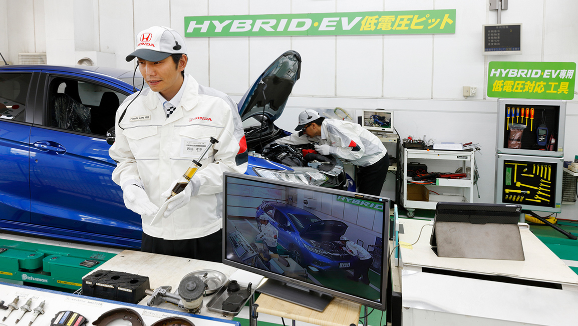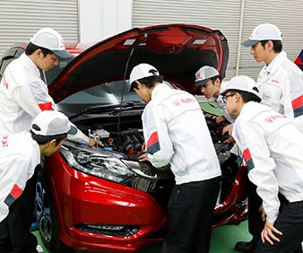 Honda Cars 兵庫中央 立会い車検では、お客様により安全で安心なカーライフをご提供するため、徹底した社員研修を行っております。(国産全メーカー車対応) これにより、整備士一人一人が責任をもって、お客様のお車を点検・整備・検査いたします。